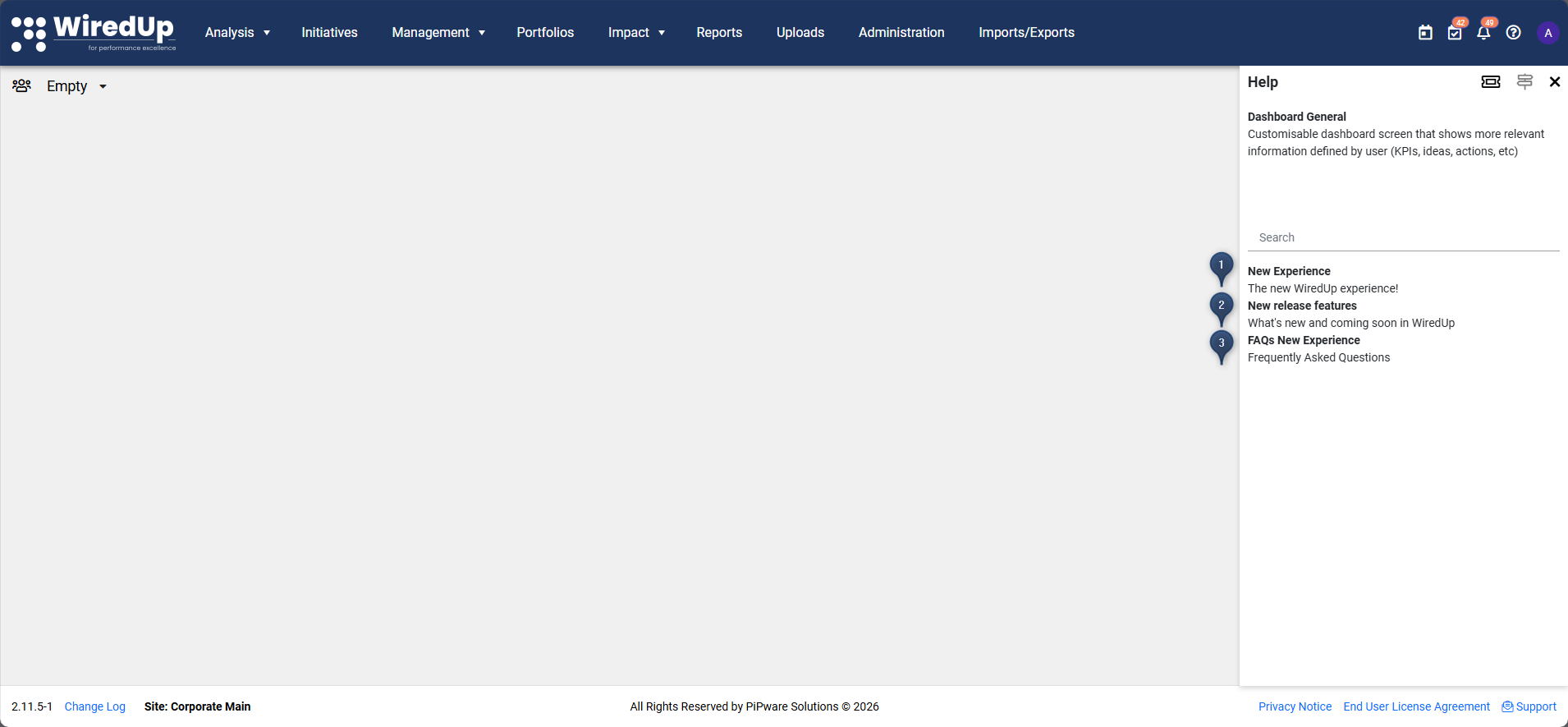The Help feature in WiredUp provides comprehensive support and guidance directly within the application through an extensive library of help articles and resources. It offers organized documentation covering all WiredUp features, frequently asked questions, guided tours, and direct support ticket submission to help you navigate and use WiredUp effectively. The Help pane is context-aware, automatically displaying information relevant to the page you're currently viewing.