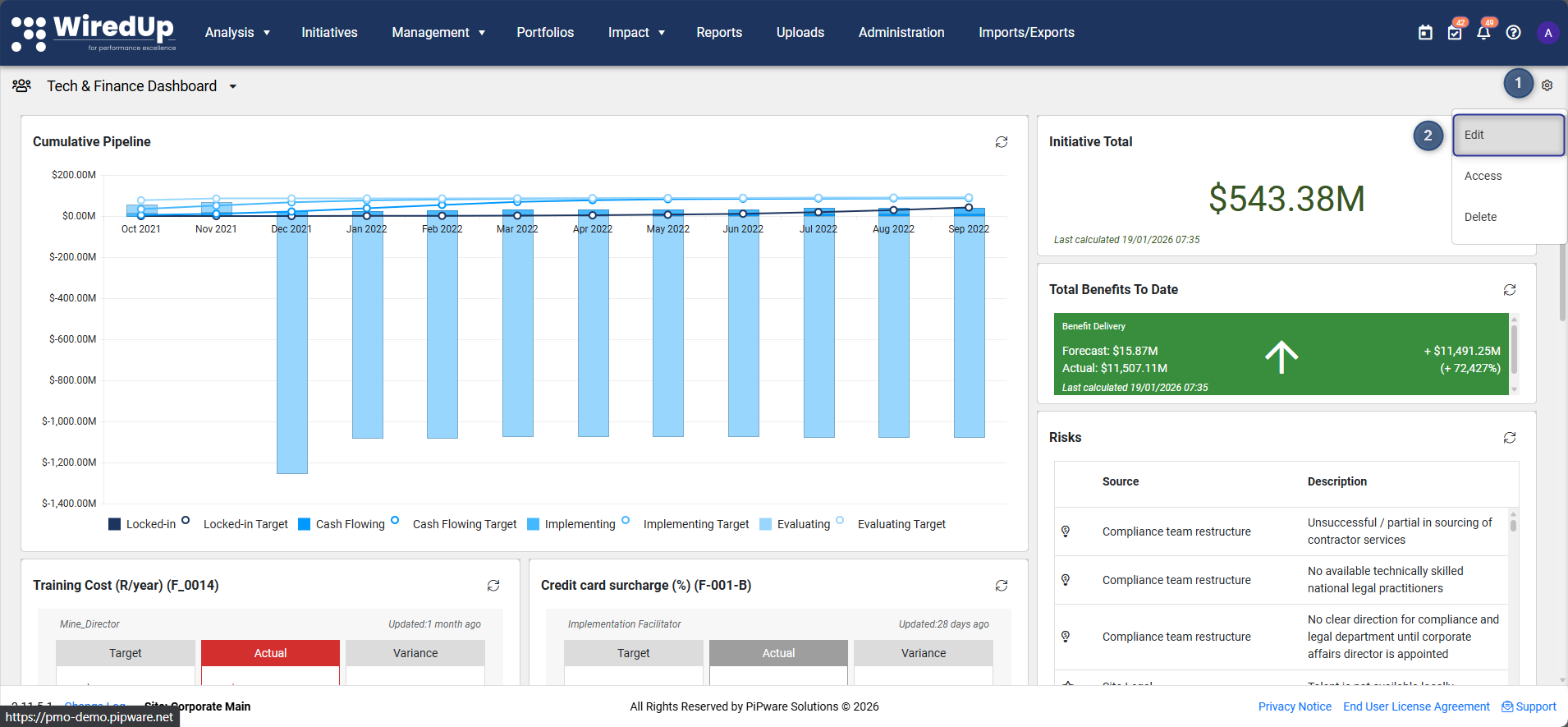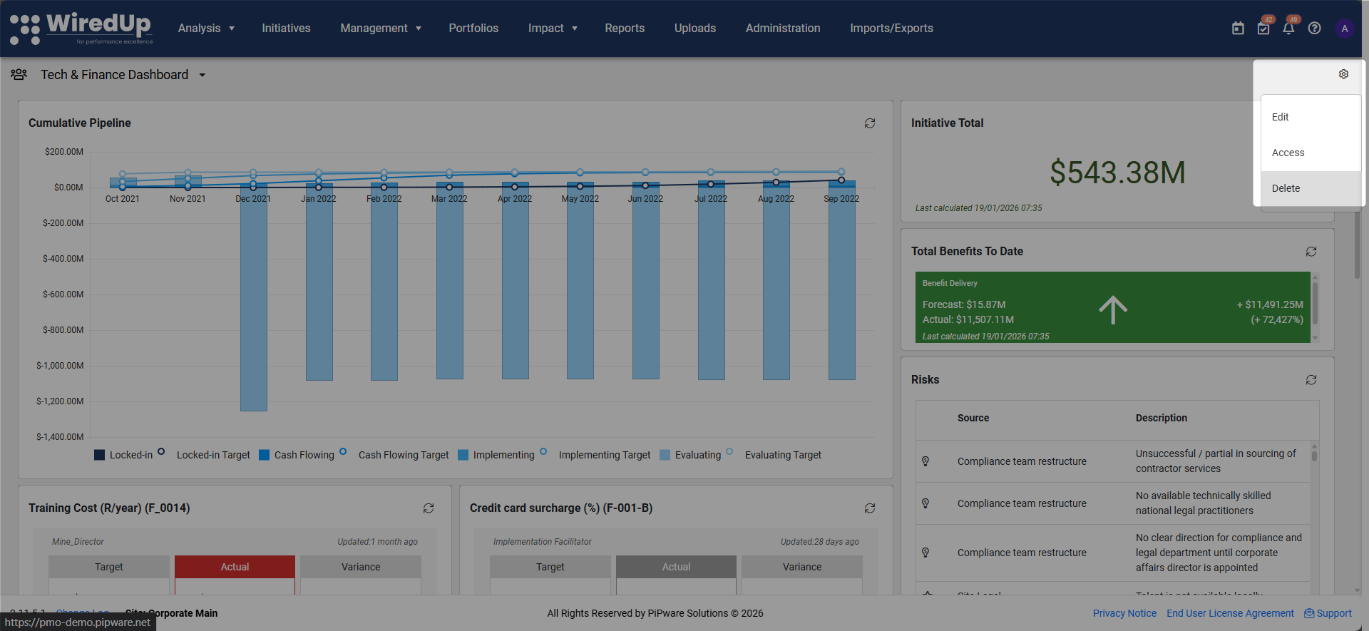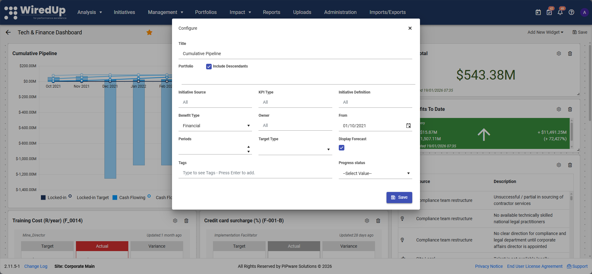 - Both Public and Private dashboards can be linked to a specific portfolio level, which applies default portfolio filtering to all widgets.