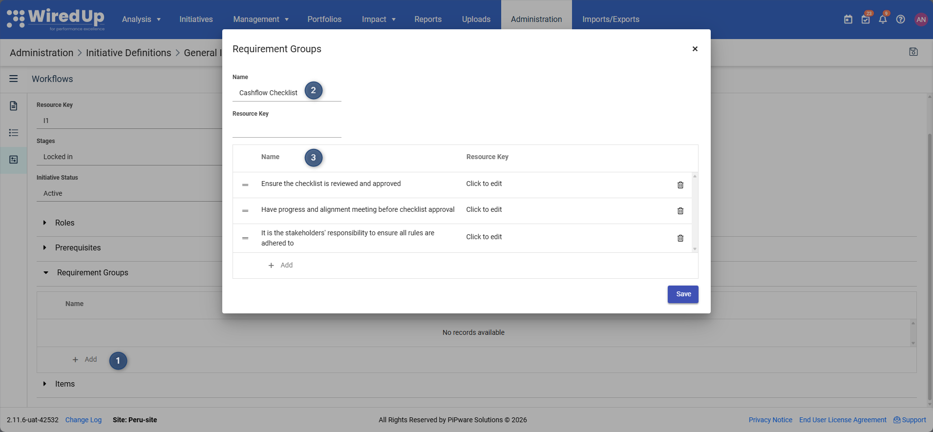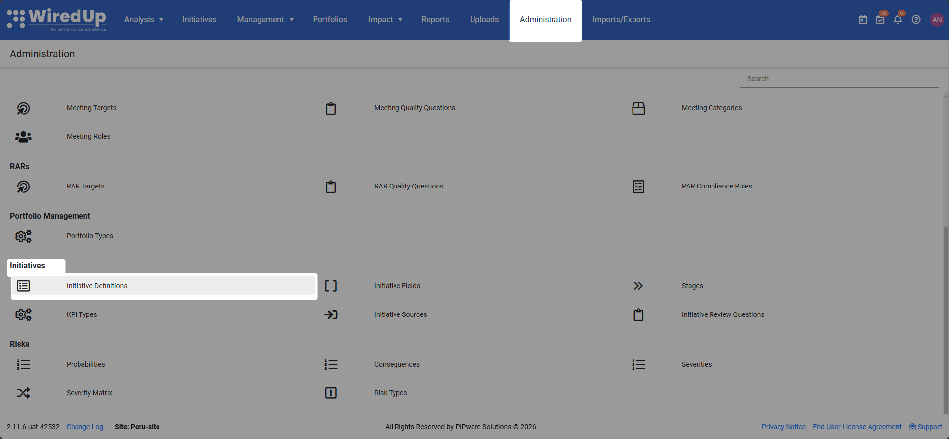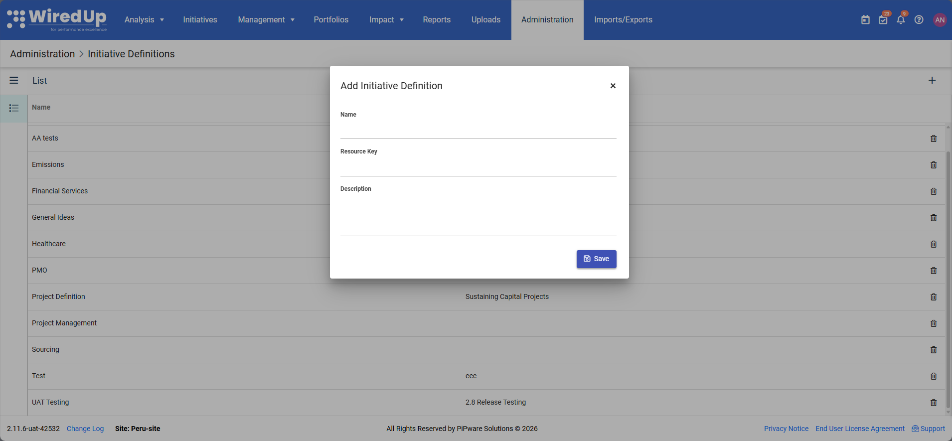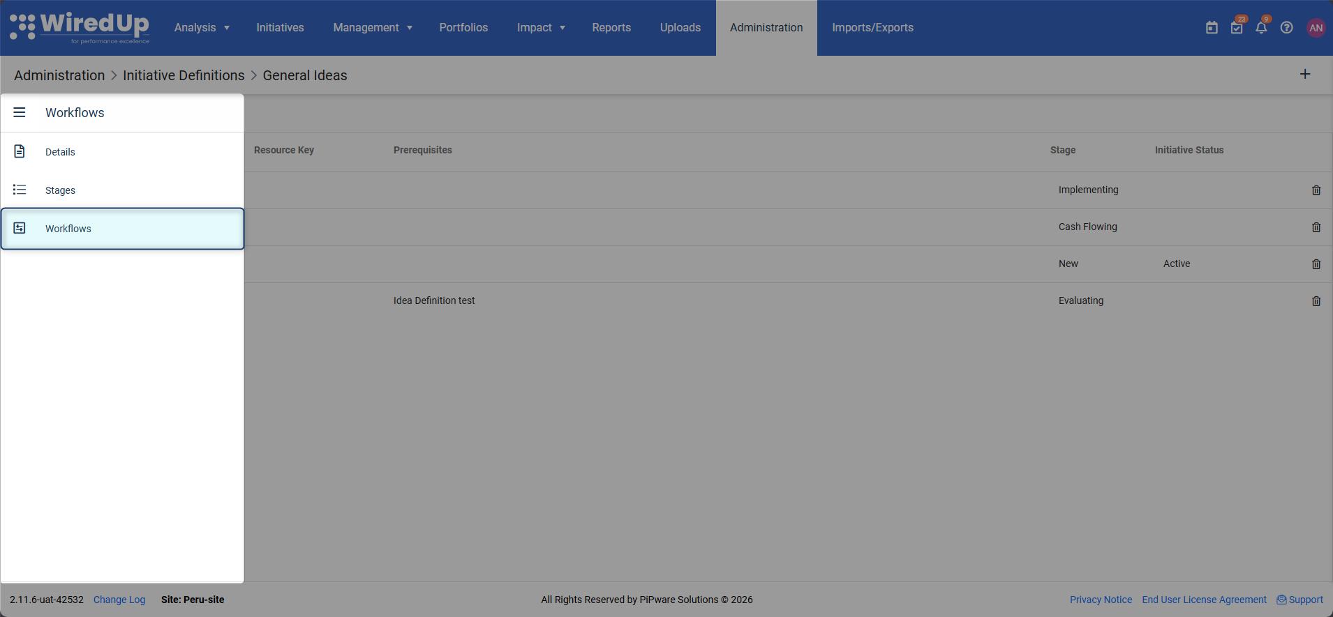 The Idea Definitions feature allows administrators to configure and manage the framework that governs how ideas and initiatives operate within WiredUp. An Idea Definition determines the specific set of stakeholders, workflows, stages, and approval requirements that apply to an idea throughout its lifecycle.
