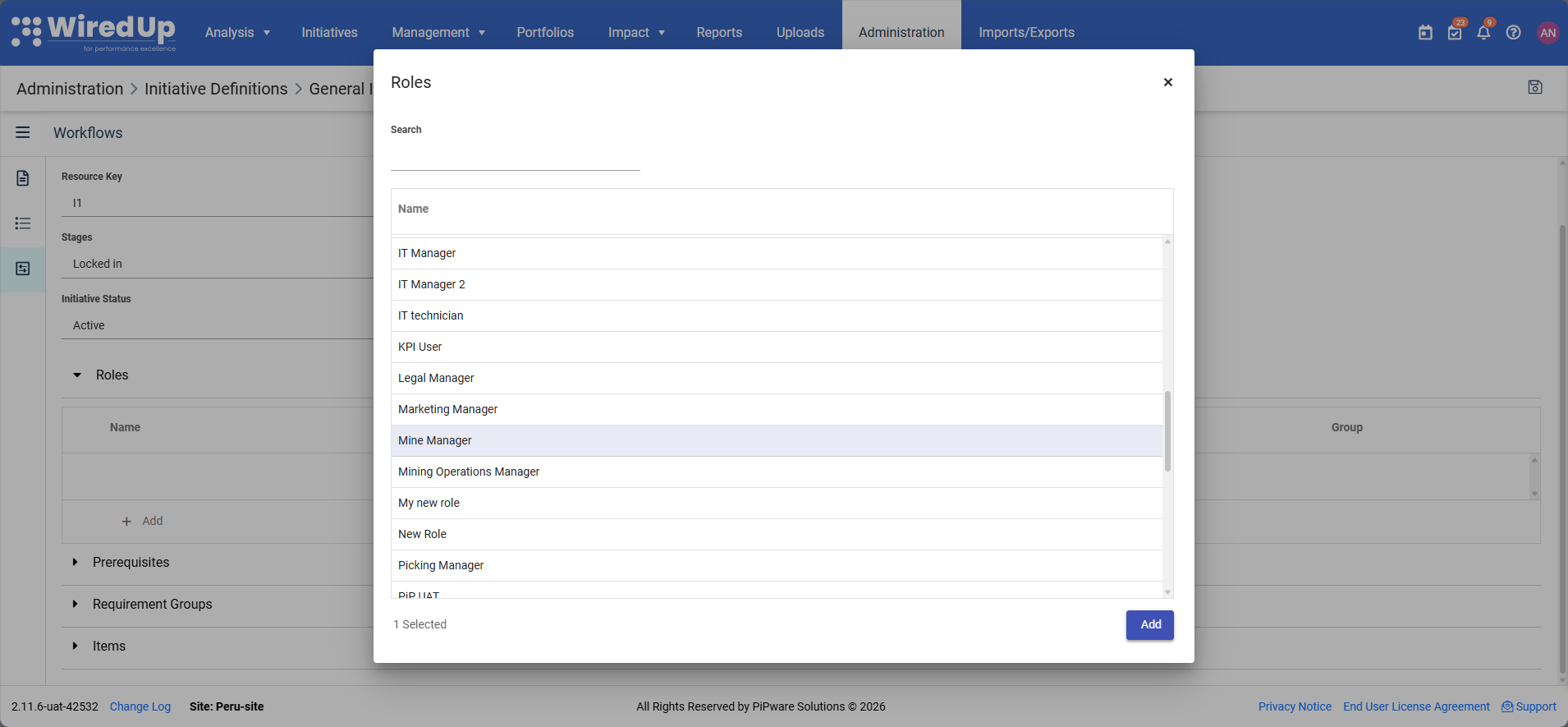 - Select the Role from the list of roles displayed (e.g., Manager, Finance Director, Project Sponsor) then click Add