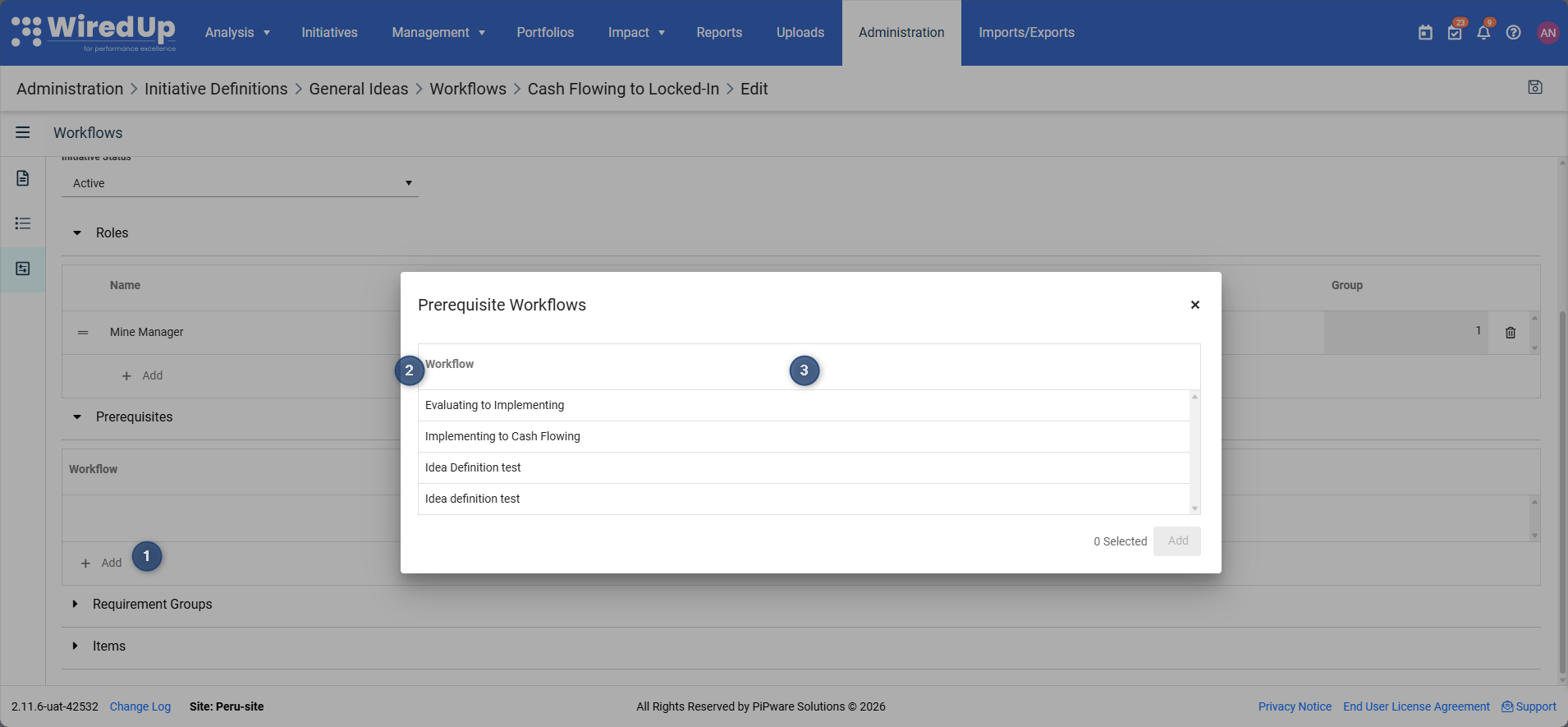 Prerequisites define which workflows must be completed before this workflow can be submitted. To configure prerequisites: