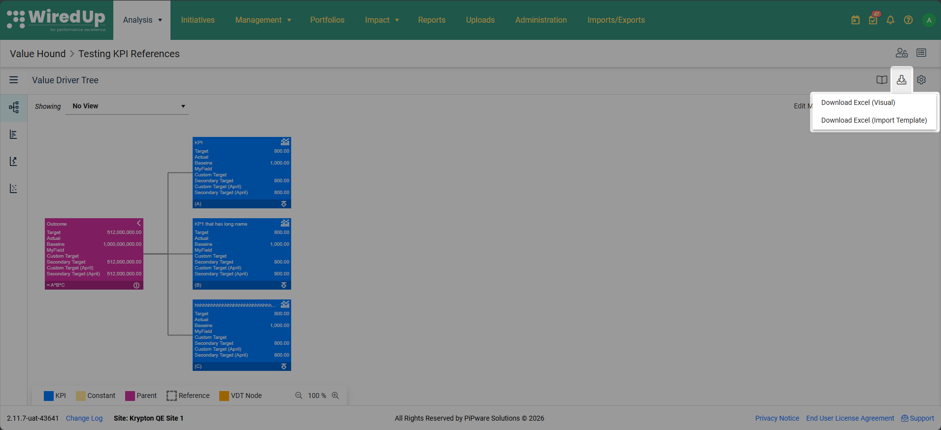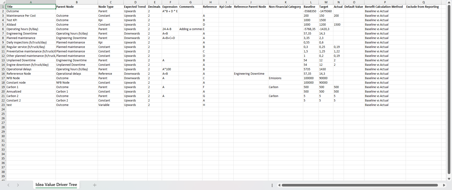 - Exports the VDT in a visual Excel format that mirrors the tree structure displayed in the UI