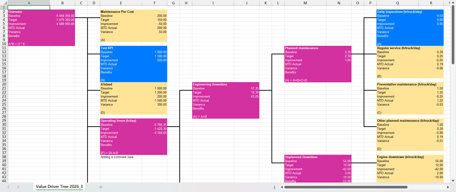 - Keep calculation logic in the Value Driver Tree where possible, rather than in KPIs