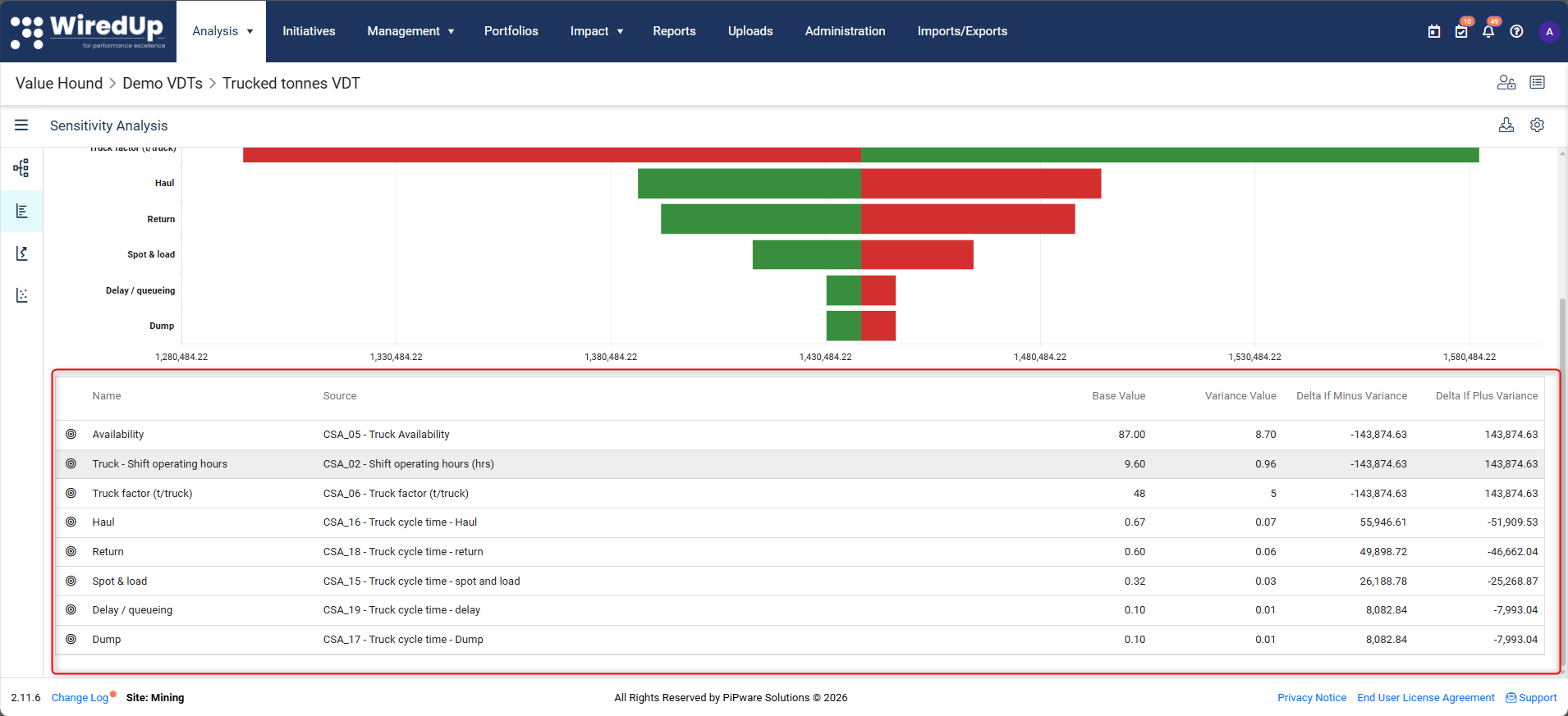 The direction shown in Sensitivity Analysis reflects how the outcome changes when the KPI value is increased by the selected variance.