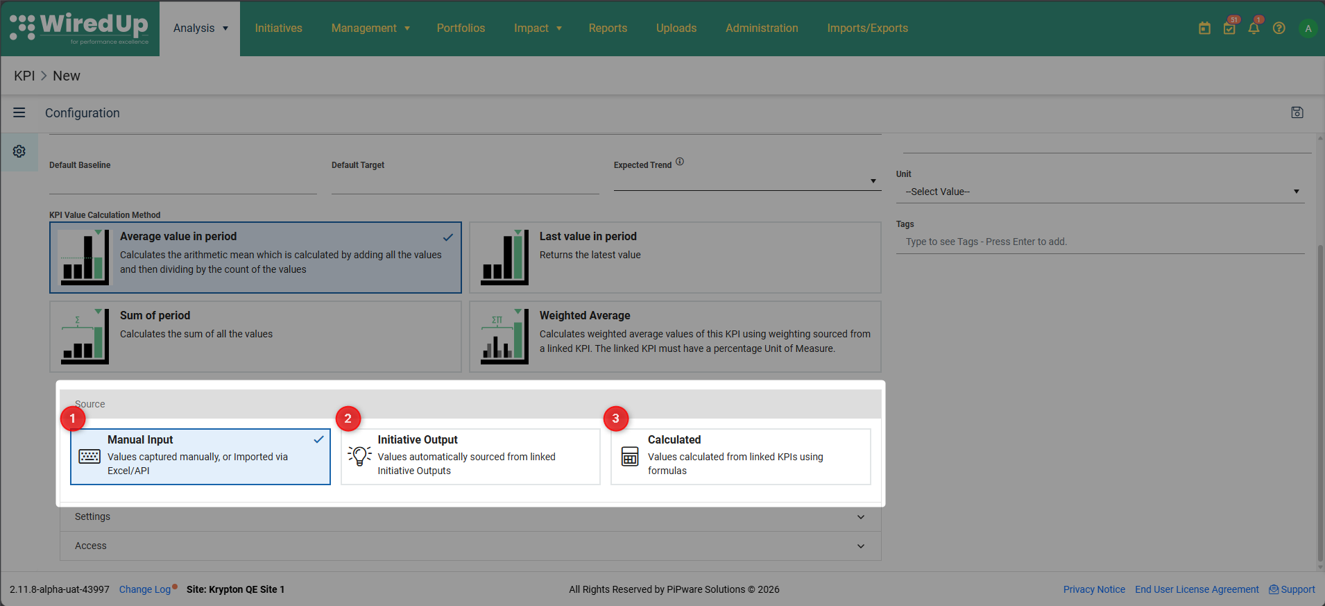 KPIs in WiredUp can source their values in three different ways, each serving a distinct purpose in your performance management strategy: