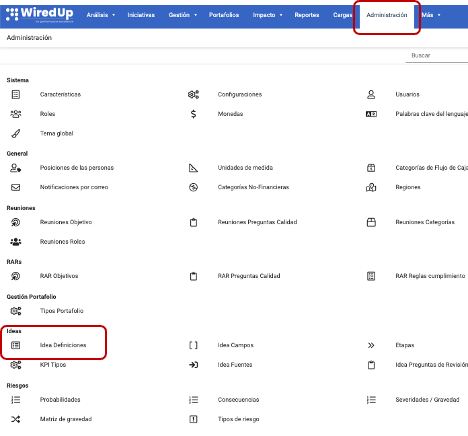 - Configurar y gestionar flujos de trabajo dentro de las definiciones de ideas.