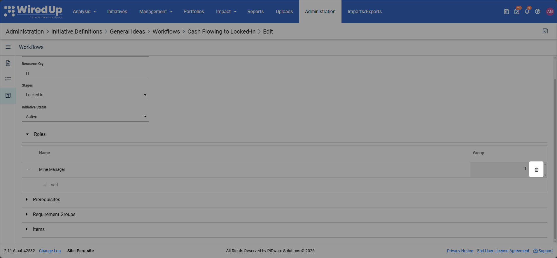- Haga clic en el icono de la papelera para eliminar un rol del flujo de trabajo.