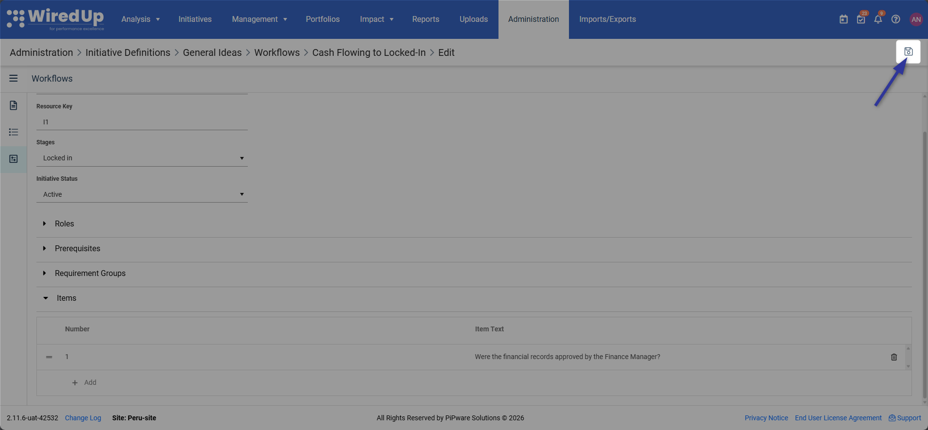 Los elementos son las preguntas específicas que deben responderse antes de que un flujo de trabajo pueda enviarse para su aprobación. Para configurar los elementos: